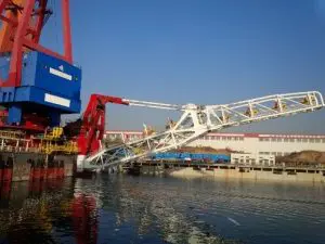 In order to unload the big containers from the ships, ship-to-shore cranes or quay cranes need a long cantilever for the sleigh to run over the ship to load or unload the containers. The big hinges for the cantilever can have different bushing materials like COM-KU®/D or LUB-MET® and in some cases also Spherical plain bearings from these two materials. The tensioner bars tentatively come without bushings, but SBS highly recommends to upgrade the pins and housings as after some years they will corrode and seize. POM-MET® or thin walled COM-KU®/D is perfect.
