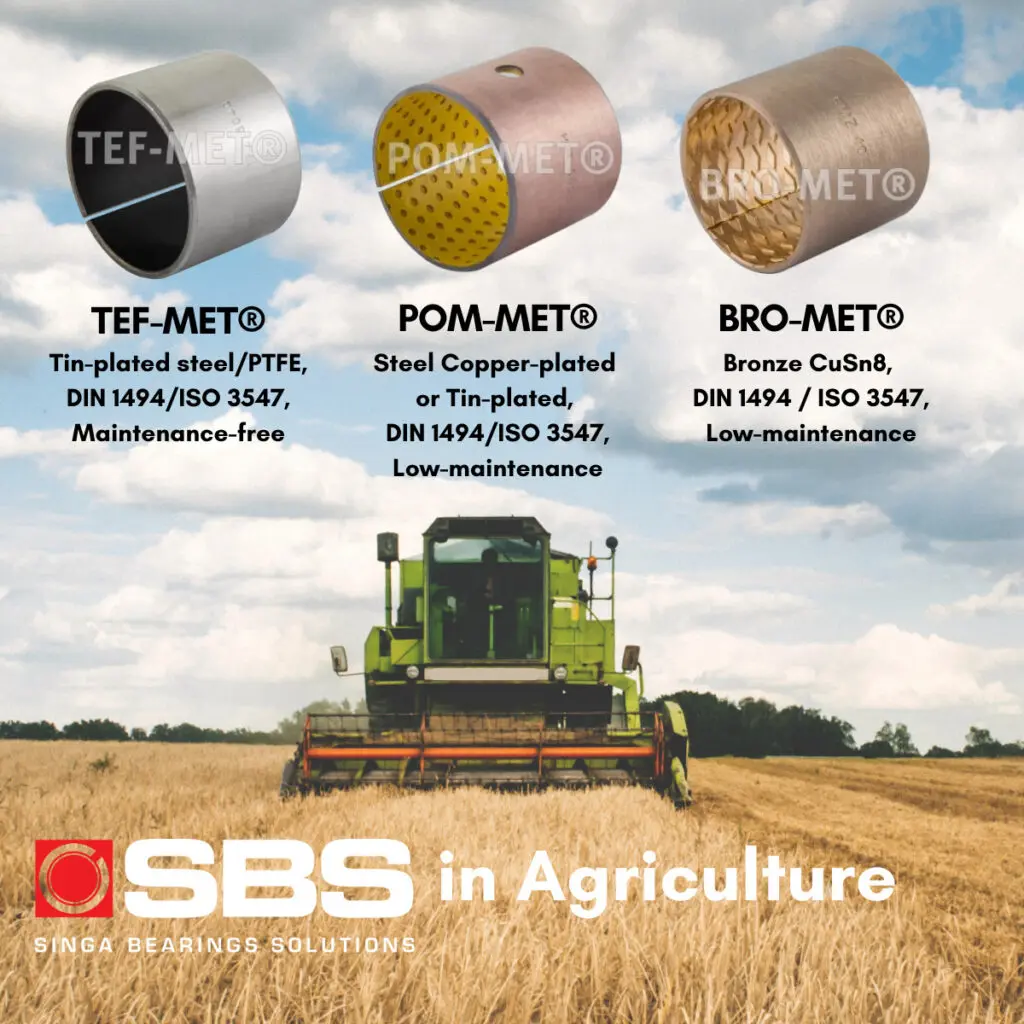 Maintenance-free materials are also a great option for agricultural applications. The SBS COM-KU®/M, a maintenance-free solution, features a specially woven PTFE and synthetic fibre sliding layer. Boasting excellent mechanical properties and fatigue strength, this composite bearing’s extremely high load capacities makes it superbly suitable for various outrigger applications!